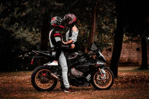 The location sets the stage for your motorcycle couple photoshoot and plays a crucial role in capturing the right ambiance. Consider scenic routes with breathtaking backdrops such as winding roads, picturesque landscapes, or even urban settings with a gritty, edgy vibe. If you both have a favorite biking spot, that could be the perfect place to start. Whether it’s a rugged mountain road or a tranquil lakeside, the location should resonate with both of you and add depth to the visual story of your relationship.