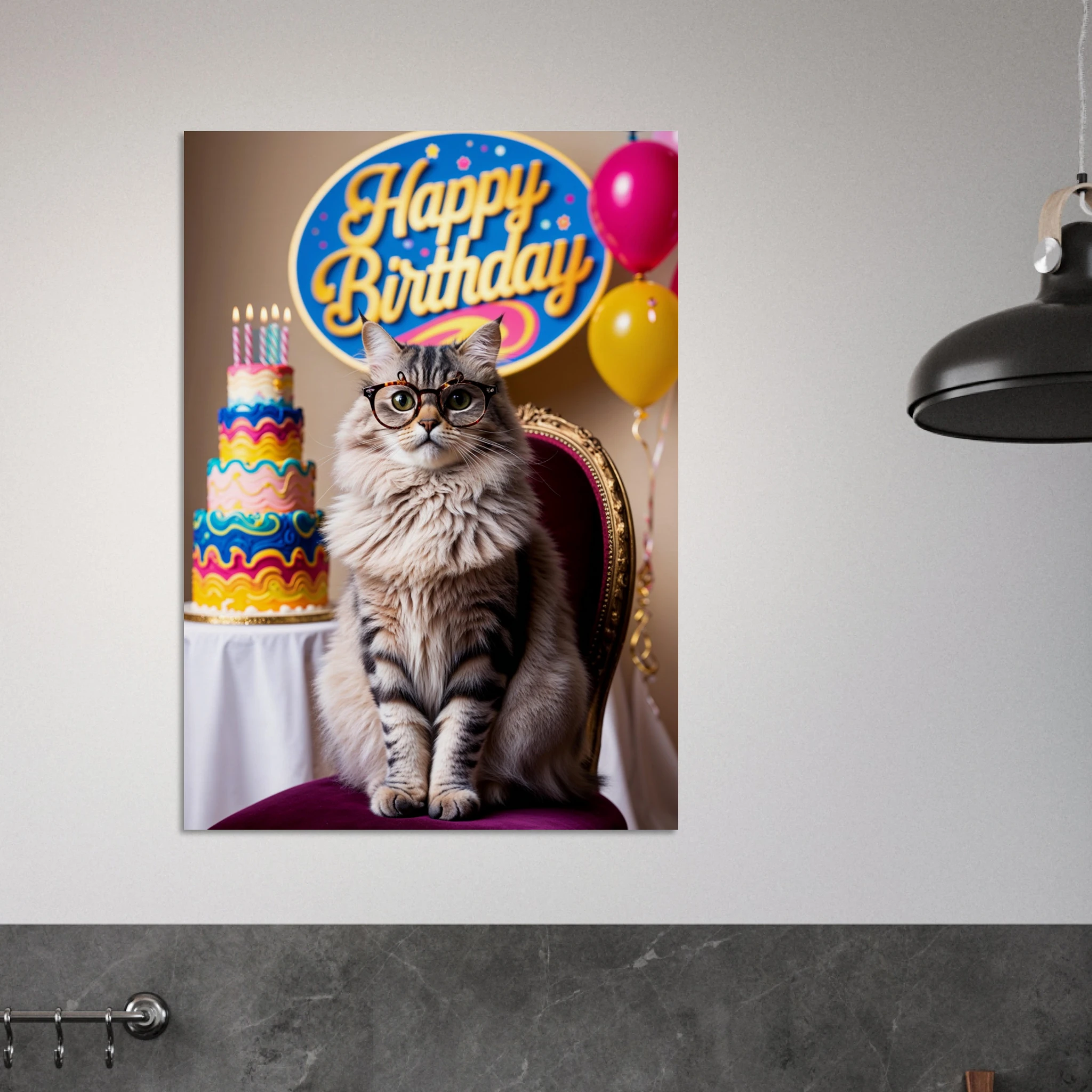 Let’s talk about cats. They do what they want, when they want, and somehow, we’re all okay with it. That’s why this cat birthday poster is purr-fect for the cat lover in your life. The image of a laid-back feline, casually perched on a chair with a “Happy Birthday” sign, is just the right amount of “I don’t care, but I actually do.” It’s for that friend who wants to feel celebrated but still maintain an air of nonchalance. Give them this poster, and they’ll definitely be feline good on their big day!